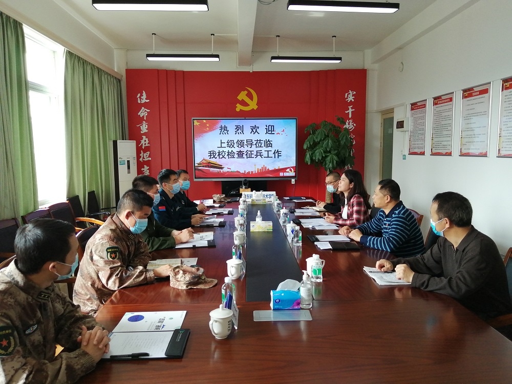 3月1日,军纪委第五派驻组上校干事王一男带队,会同省军区政工局、动员局、市警备区动员处等相关负责人来我校检查调研征兵各项工作落实情况。学校党委副书记梁艳珍参加会议。
