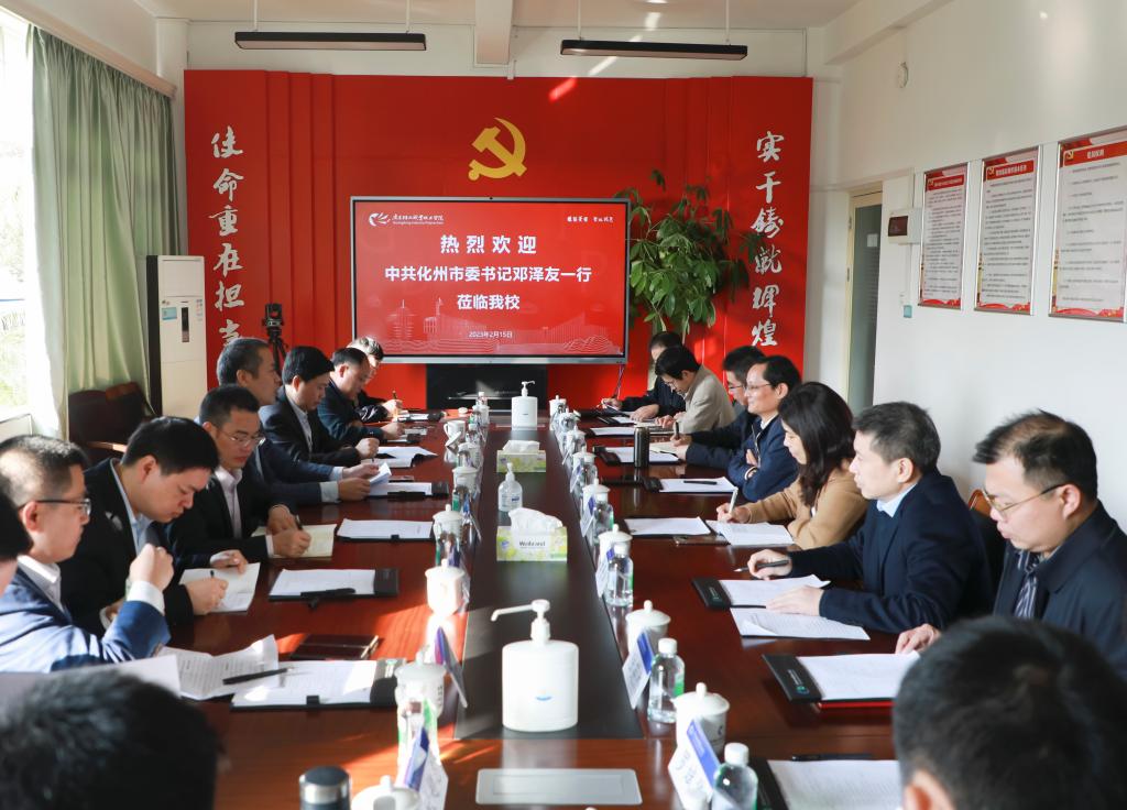 2月15日,化州市委书记邓泽友一行到访我校,党委书记杜安国在办公楼二楼会议室接待了来宾。双方就职业教育赋能化州高质量发展进行深入交流,并达成战略共识。