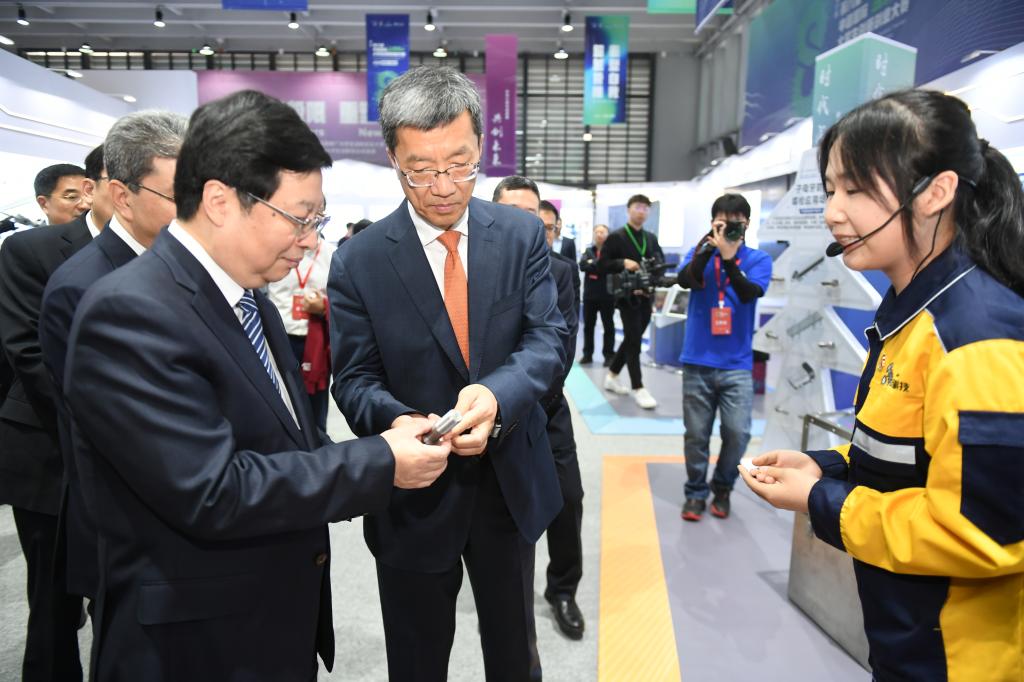 负责人李楠向怀进鹏部长、胡衡华市长介绍项目