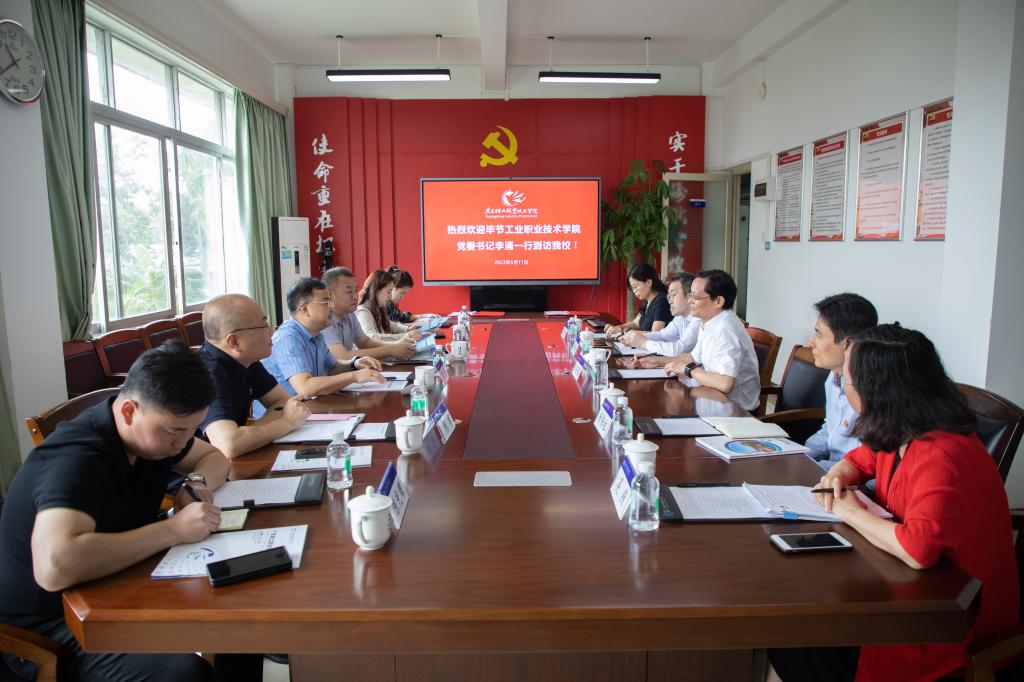 2023年5月11日上午,毕节工业职业技术学院党委书记李涌、党委副书记邱国援到访,并和学校签署结对帮扶协议。学校党委书记杜安国接待了李涌一行,并一同参观了新港校区。