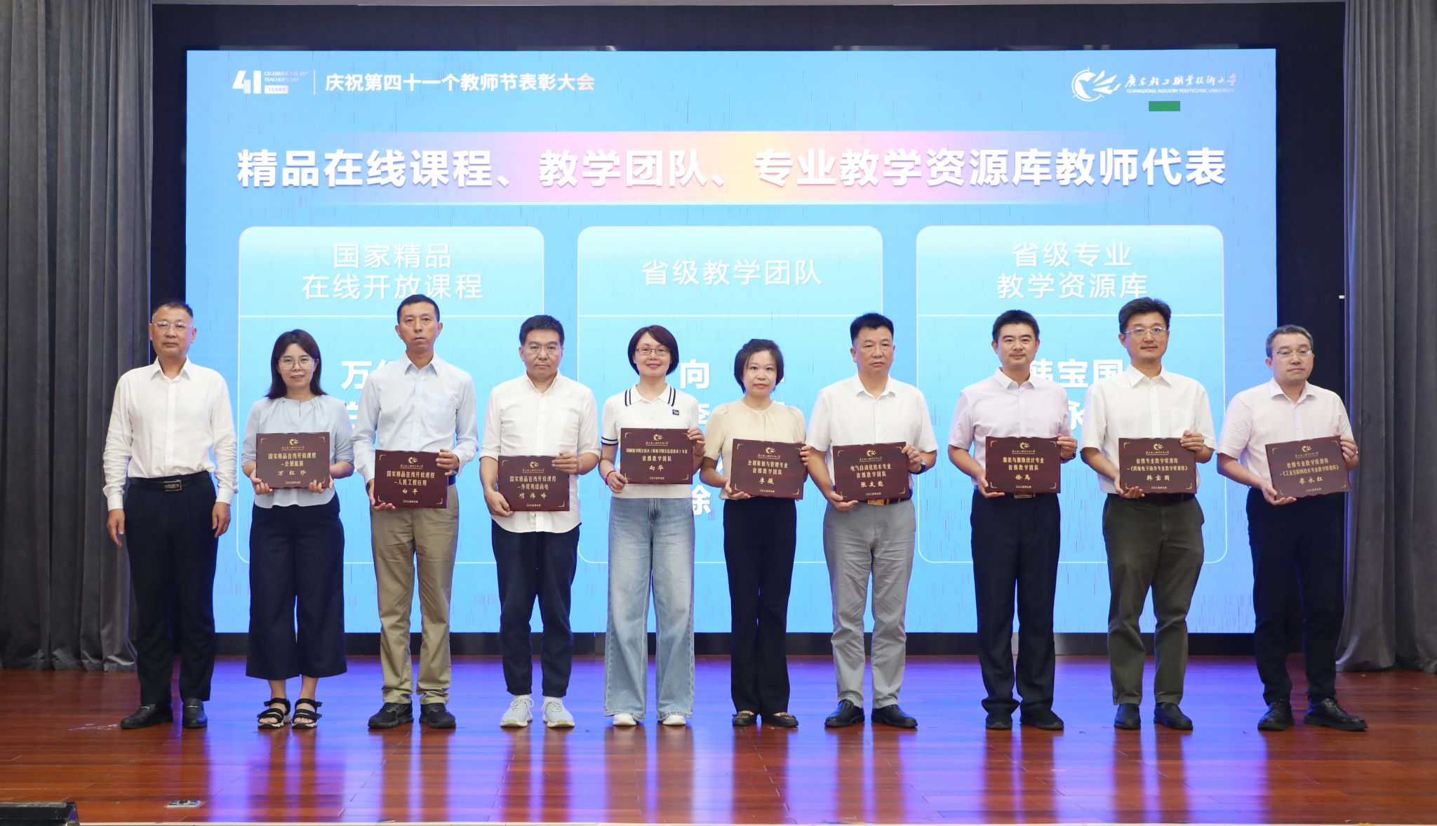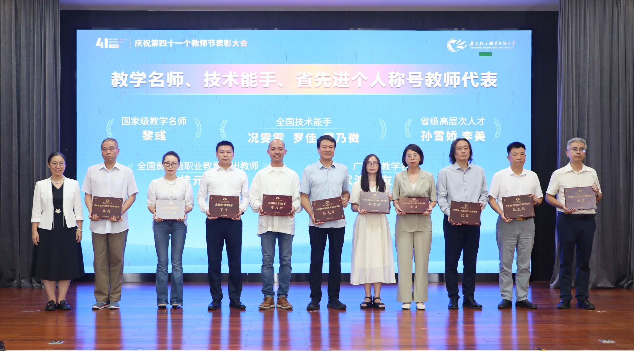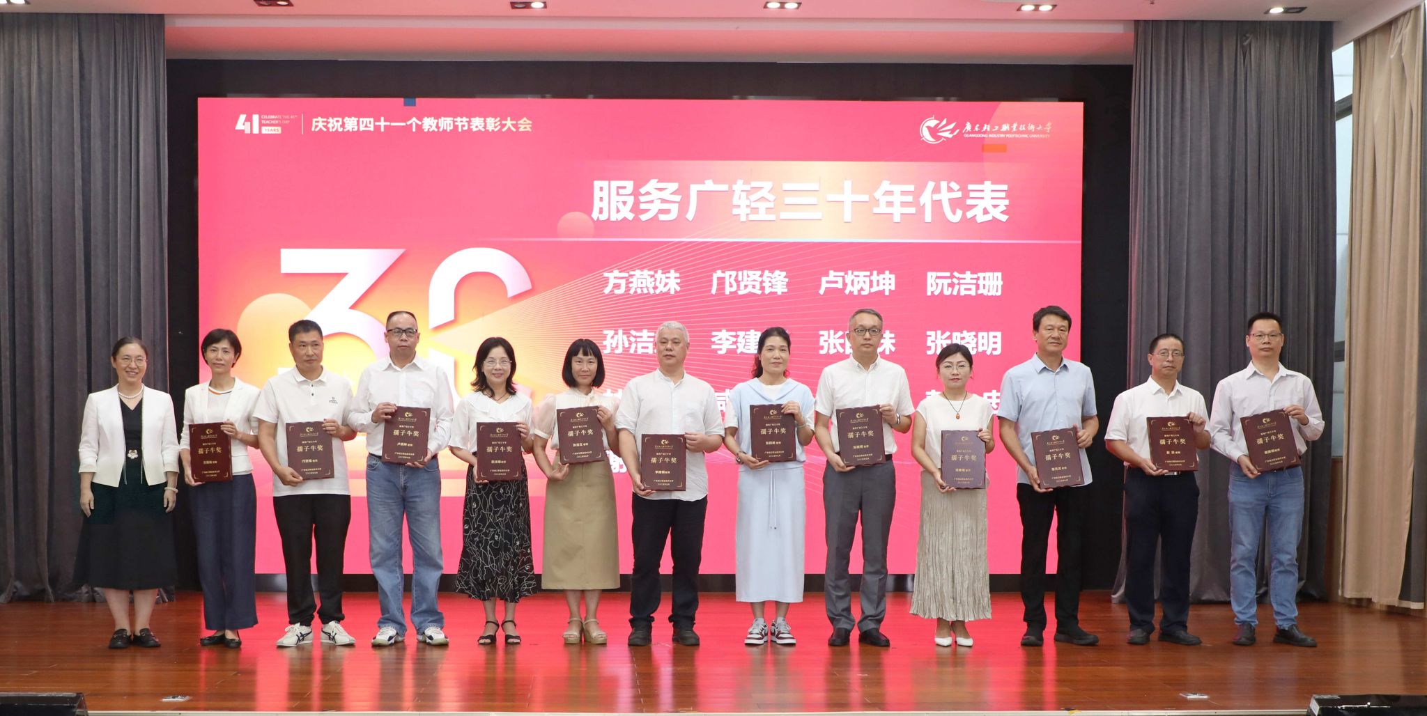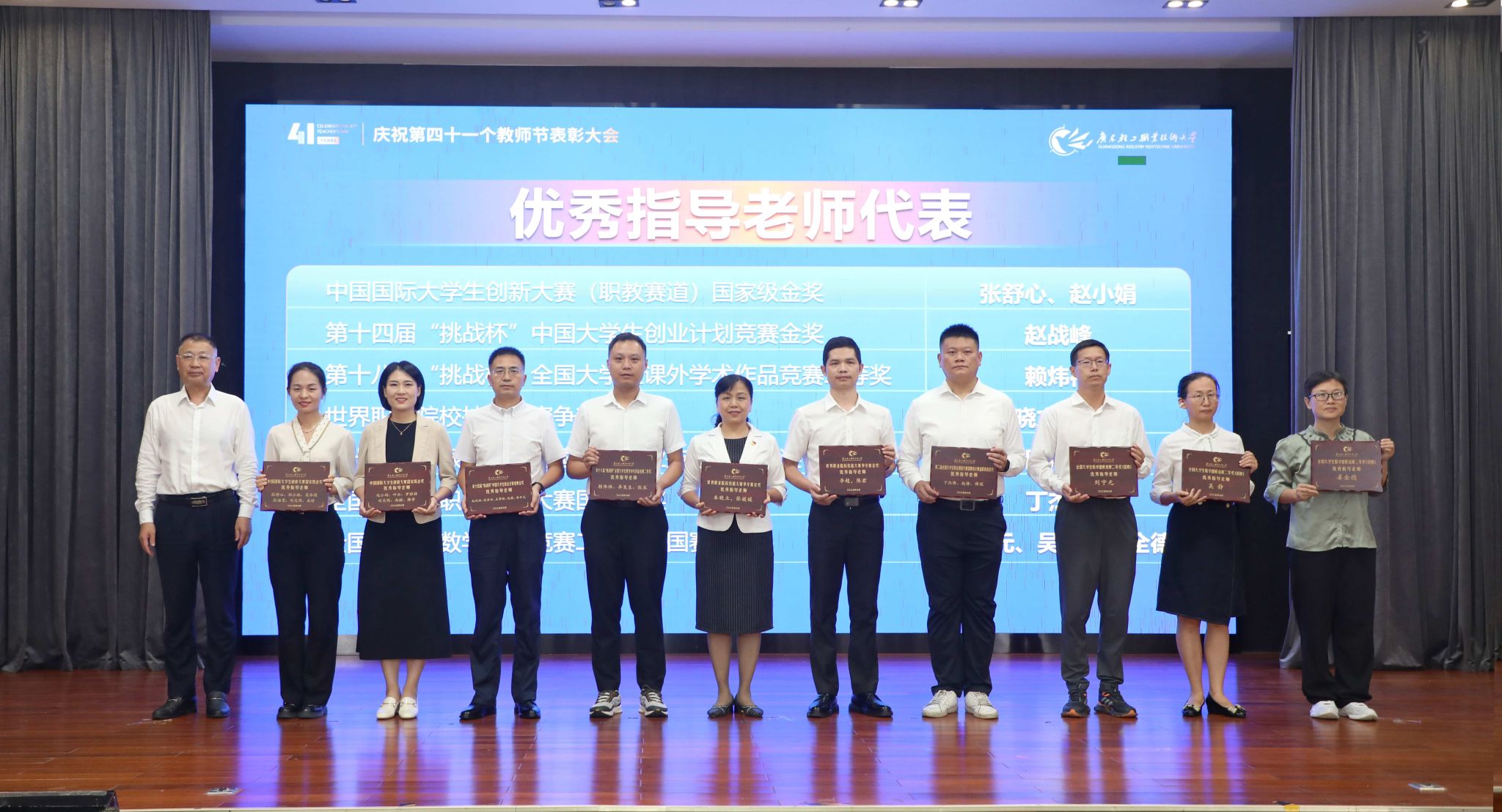 大会表彰了教学名师、技术能手、黄炎培职业教育杰出教师、省级人才教师,并向在“申本"、“双高”工作有突出贡献,在教学能力比赛、科研、指导学生竞赛等方面获奖的集体和个人颁发荣誉证书,大会还颁发了服务广轻三十年“孺子牛”奖及首届校级优秀教师、优秀教育工作者、优秀集体奖。
