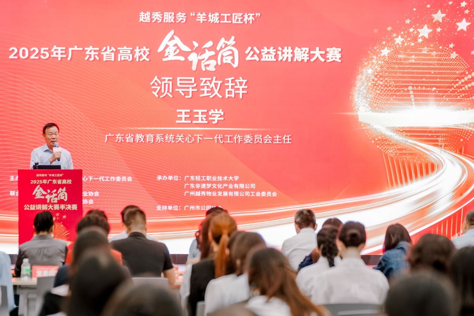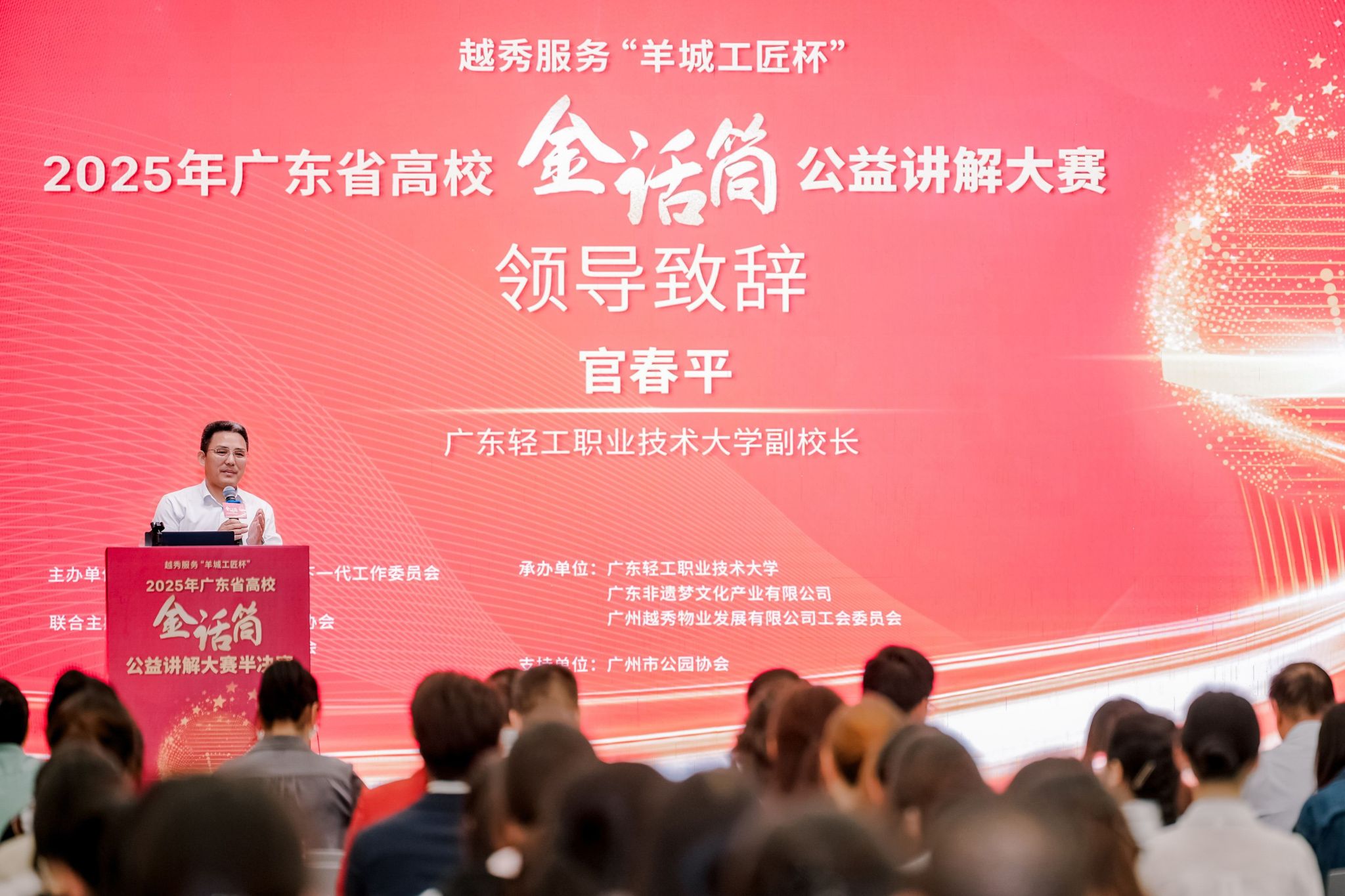 11月2日,由广东省教育系统关心下一代工作委员会主办、我校承办的2025年广东省高校“金话筒”讲解大赛半决赛在我校新港校区商演中心举行。广东省教育系统关心下一代工作委员会主任、广东省教育厅原副厅长王玉学,学校副校长官春平出席开幕式。