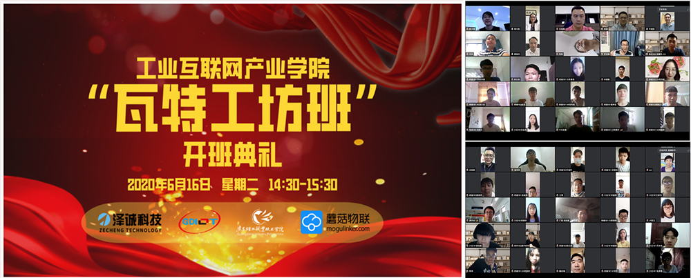 6月16日,工业互联网产业学院“瓦特工坊班”举行线上开班仪式。学校副校长廖俊杰,广东省物联网协会副会长陈玉琪、教育分会技术总监高源,蘑菇物联技术(深圳)有限公司CEO/创始人沈国辉出席。据称,“瓦特工坊班”是全国第一个工业互联网产教融合的特色班,该班通过学生自主报名、校企共同组织面试最后择优录取46人。