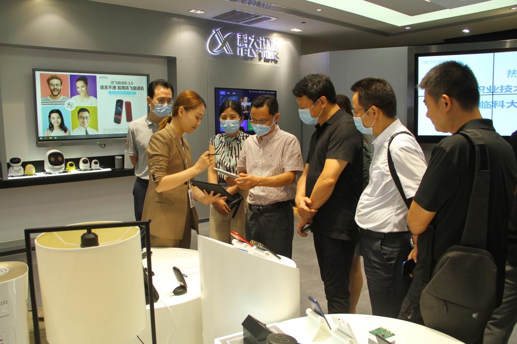 在科大讯飞,杜安国一行详细了解了公司的发展历程,并在公司人工智能展厅深入学习、体验科大讯飞在语音翻译、教育、医疗等方面的最新科技产品。李伦军与公司相关部门人员与我校调研人员进行了座谈交流。在听取科大讯飞在智慧教育等方面的业务介绍后,杜安国指出,科大讯飞有着强大的科技实力,能够为教育教学改革作出更大的赋能,与我校在课程资源开发、师资培训、智慧课堂建设、实训室建设、1+X证书、创新创业等方面具有广泛深入合作的前景和空间。李伦军听取学校和学院介绍后,表示愿在师资培训、实验实训室建设、数字营销、信息化教学等方面与我校开展相关合作,助力产业和职业教育的融合发展。