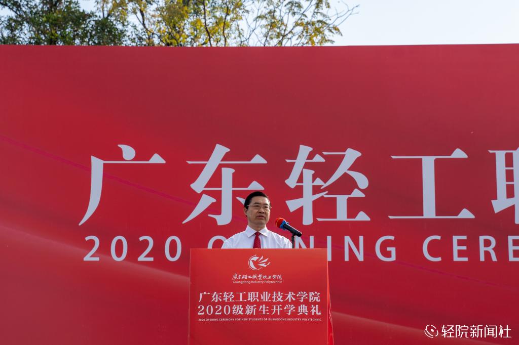 校长卢坤建在致辞中表达了对本届新生的热烈欢迎,肯定了90后与00后在疫情之年的勇气与作为。他告诉同学们,广轻工作为一所具有悠久历史的高职院校,每年为国家和社会培养输送了大量专业人才,而这一年,学校迎来了更加充满希望的“后浪”。他寄语“后浪们”,在职业教育深受重视的时代,要响应时代对筑梦工匠的呼唤,将“德能兼备、学以成之”转化为实际行动,铸造成人生准则。做到以德为先,以能为本,学以成之;做有德、有能和善学之人,在日后的学海航行中直挂云帆,乘风破浪,蜕变成为大国工匠,浓墨重彩不悔青春。