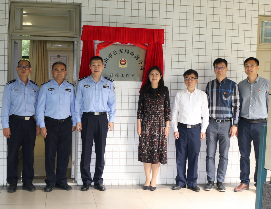 佛山市公安局国保支队副支队长胡伟忠、佛山市公安局南海分局国保大队、狮山派出所和学校校长办公室、保卫处、学生处等相关职能部门负责人参加仪式。保卫处处长凌浩主持揭牌仪式。(文图/保卫处)