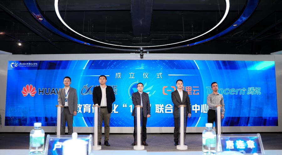 会上还发布了“广轻新基建丛书”,举行了两大建设规范《智慧校园中台建设规范》《高职智慧课室建设规范》标准发布仪式。学校联合阿里云、华为、科大讯飞、腾讯等知名企业成立的教育信息化“1+N”联合创新中心正式揭牌。