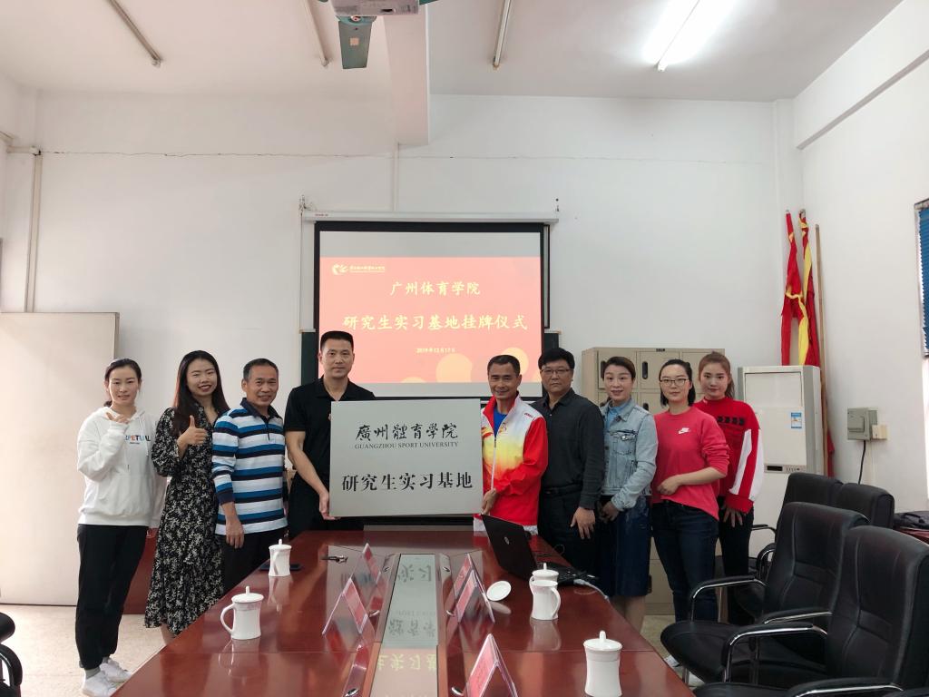 12月17日上午,我校体育部举行了与广州体育学院共建研究生实习基地的挂牌仪式。广州体育学院研究生院副院长宋君毅、田径教授董广新来到体育部进行实习基地挂牌,双方就合作共建实习基地、研究生教育实习及实习生培养等问题进行探讨。体育部主任杜少辉、党总支书记李先、副主任陈绿波等有关人员参加了本次仪式。