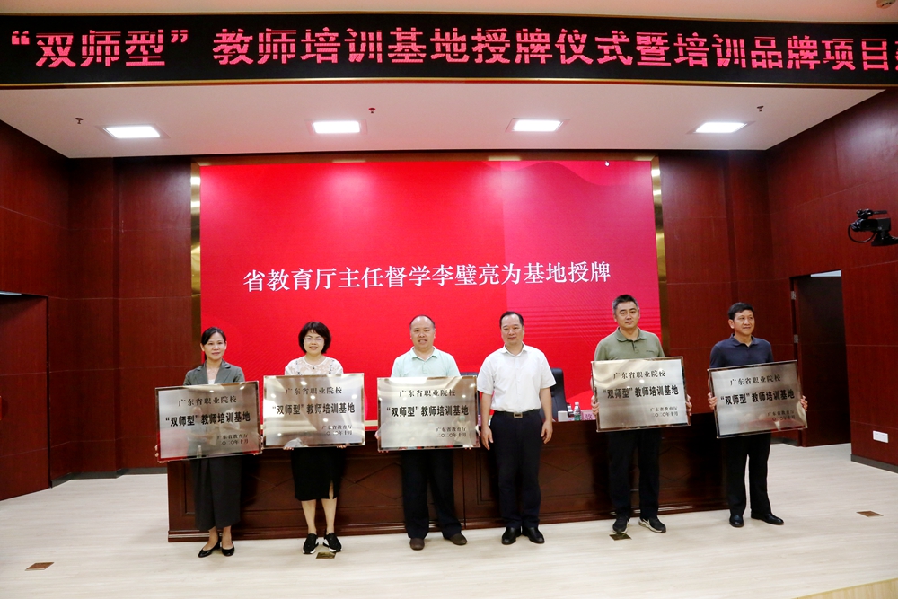 10月16日上午,由省教育厅主办的 “广东省职业院校‘双师型’教师培训基地授牌仪式暨品牌项目建设经验交流会”在广东技术师范大学举行。我校获授“广东省职业院校‘双师型’教师培训基地”牌匾。交流会上,我校代表作了经验交流汇报。