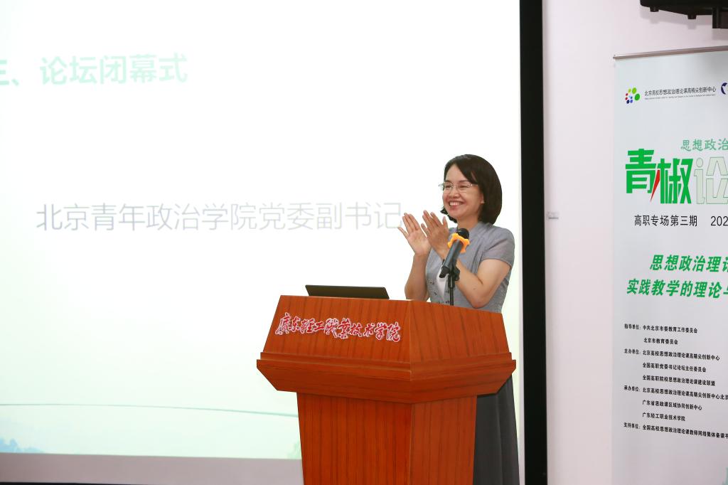 北京青年政治学院党委副书记祝文燕为论坛总结发言。她用三个“自豪”、“期待”、“感谢”三个关键词概括了本次论坛的特点和成果,尤其对本次论坛的东道主广东轻工职业技术学院表示感谢!