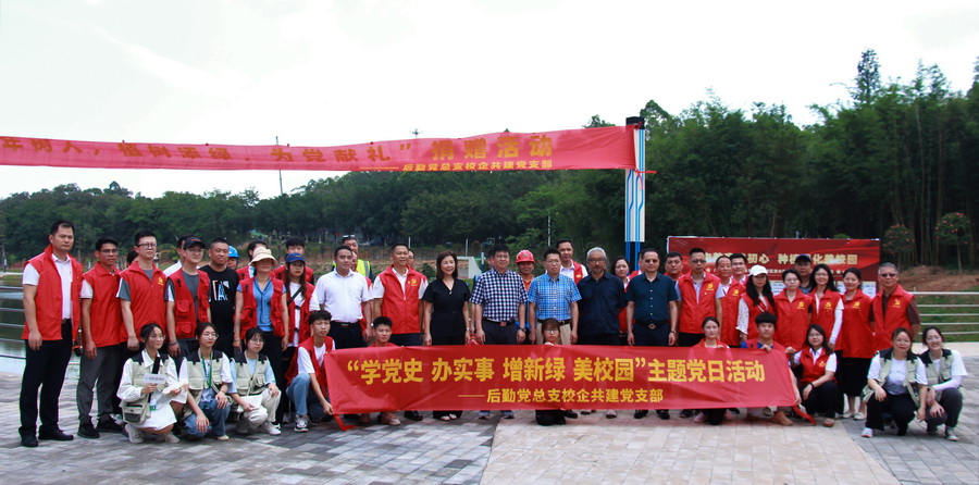 5月11日,“党史教育践初心,种植绿化美校园”绿植捐赠仪式暨后勤党总支校企共建党支部“学党史 办实事 增新绿 美校园”主题党日活动在南海校区濒水栈道举行。正在我校参观交流的广州番禺职业技术学院党委副书记李铭辉、学校副校长李丽、后勤管理处处长杨华江、后勤管理处校企共建党支部全体党员、各合作企业代表、学生代表出席了仪式,仪式由后勤党总支副书记陈杰东主持。