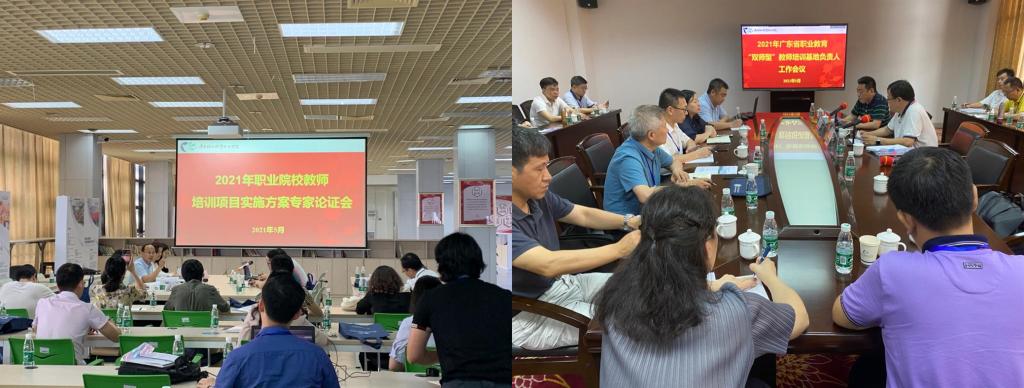 广东省教育厅教师继续教育指导中心组织召开的广东省职业教育“双师型”教师培训基地负责人工作会议及广东省职业院校教师素质提高项目管理办公室(下称省项目办)组织的2021年职业院校教师培训项目(国培、省培项目)实施方案专家论证会于5月13日至14日在我校南海校区北区图书馆二楼会议室、图书馆三楼多功能课室顺利举行。